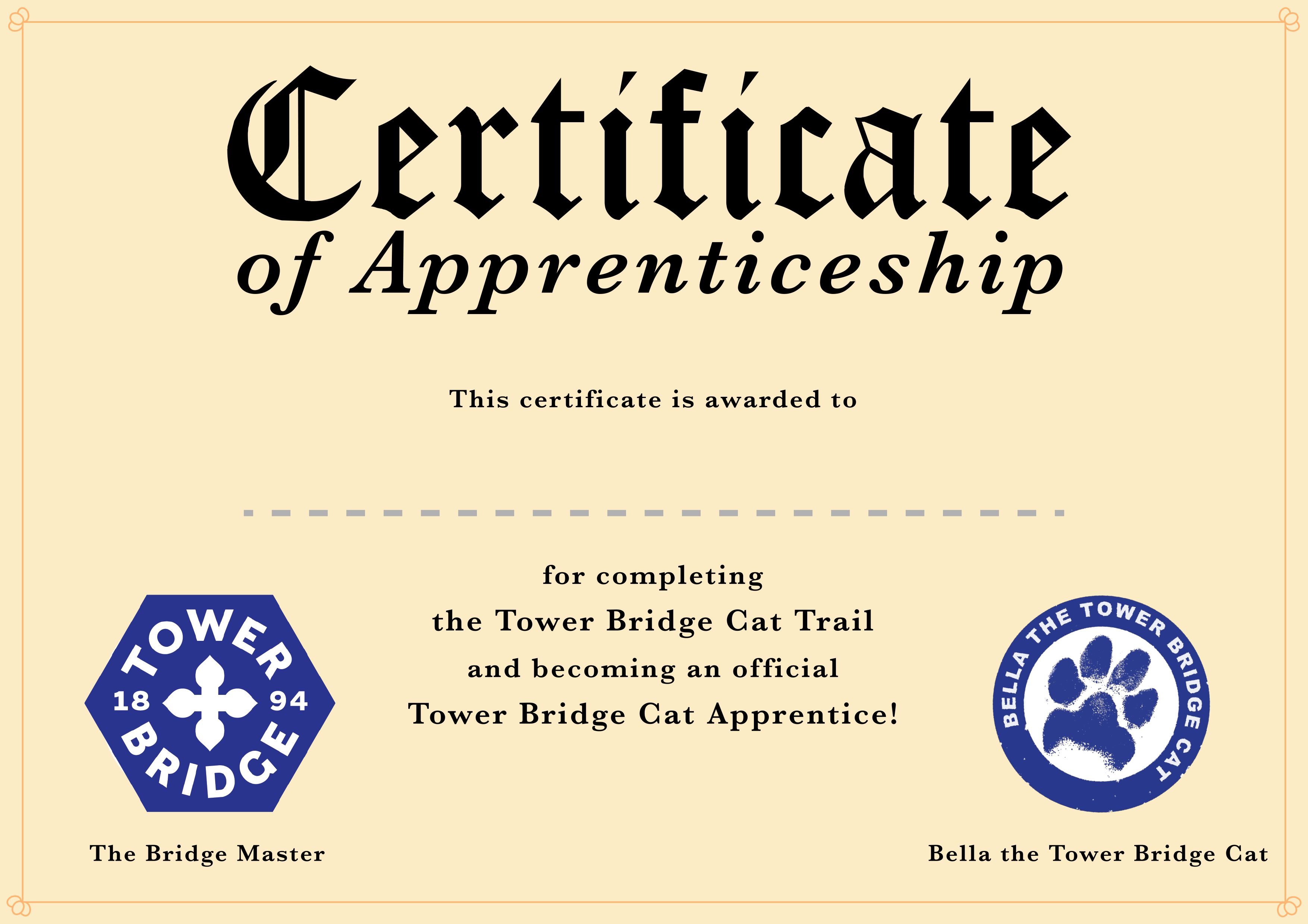 You have completed The Tower Bridge Cat Trail and are now an Apprentice, part of Bella's special Tower Bridge team.