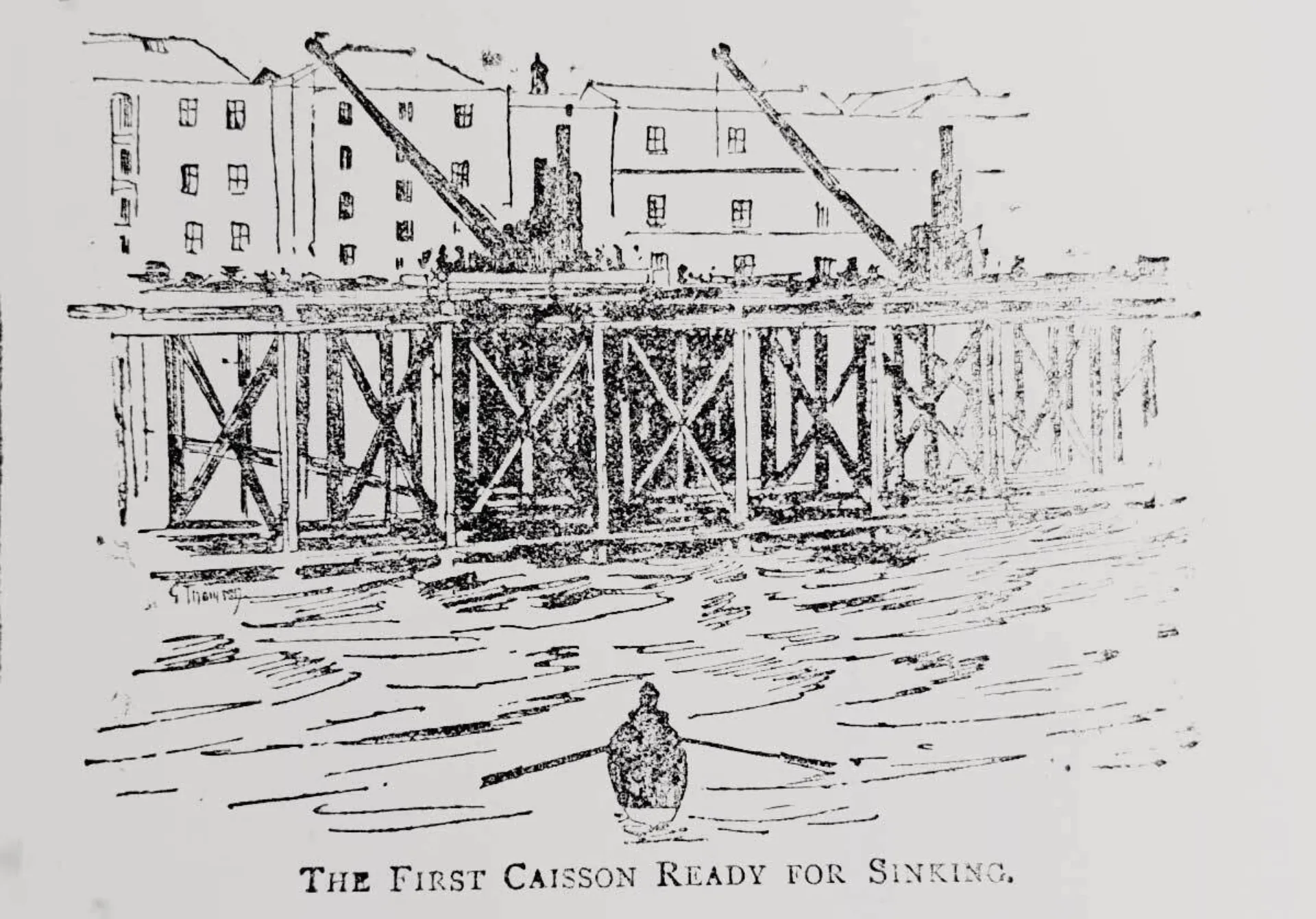 The first caisson, a deep well-like structure of iron, was sunk to a depth of almost 8m under the riverbed, creating a barrier between the river and the worksite.