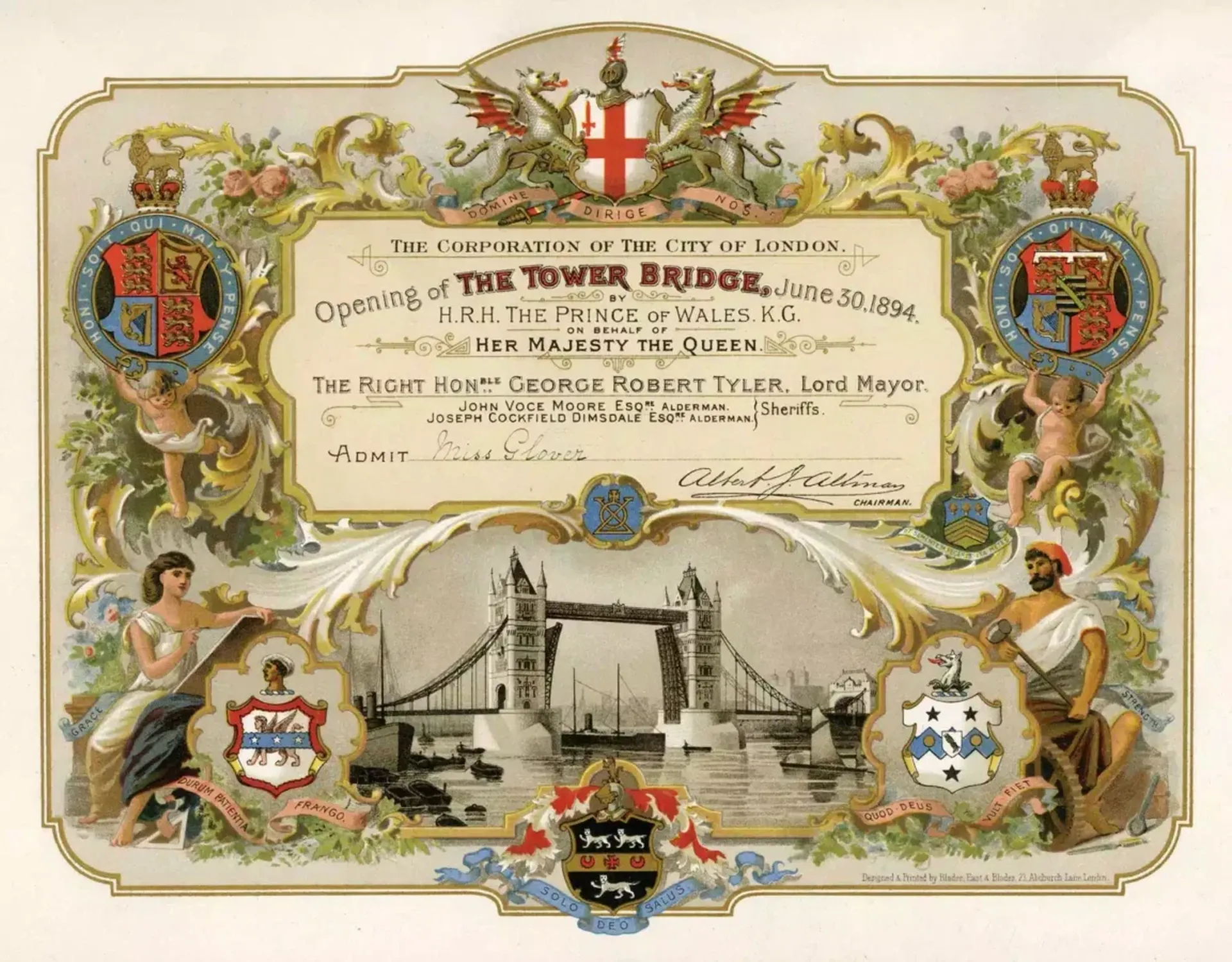 The Prince of Wales opens Tower Bridge at 12pm, 30 June 1894. He was accompanied by his wife, Princess Alexandra, and his son, the Duke of York (the future King George V). The first vessel through was the Harbour Master’s cutter, ‘Daisy’.