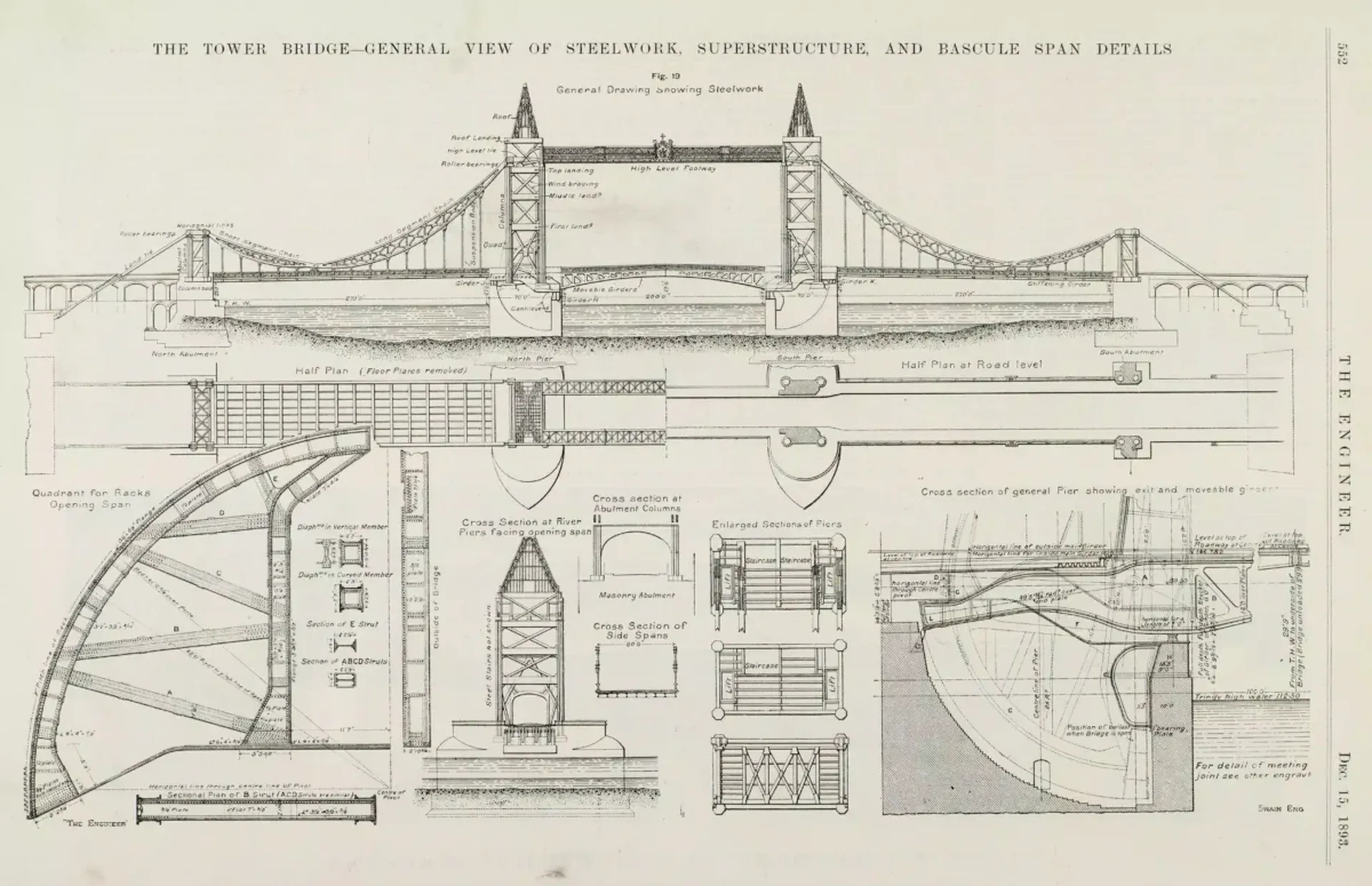 On 21 June 1894 the bascules were weight tested with steam rollers, traction engines and loaded trollies exerting a pressure of 100 CWT (hundredweight) per square foot (54.68 tonnes per square metre).
