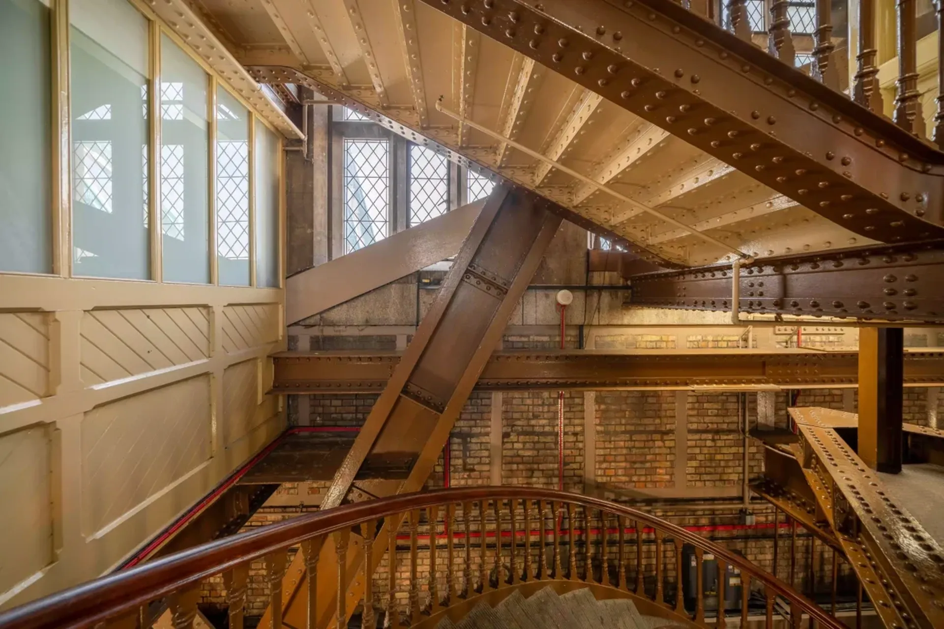 The internal stairs in the Towers are completed. You can still see the original 'bright chocolate' brown colour, rumoured to be Queen Victoria's favourite colour when visiting Tower Bridge today.