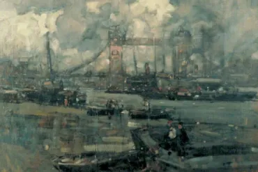 Nevinson painted the greyish ‘View on the Thames (Tower Bridge from the Pool of London)' in around 1930, and Pears created ‘Pool of London during the Dockland Air Raids’ in 1940.