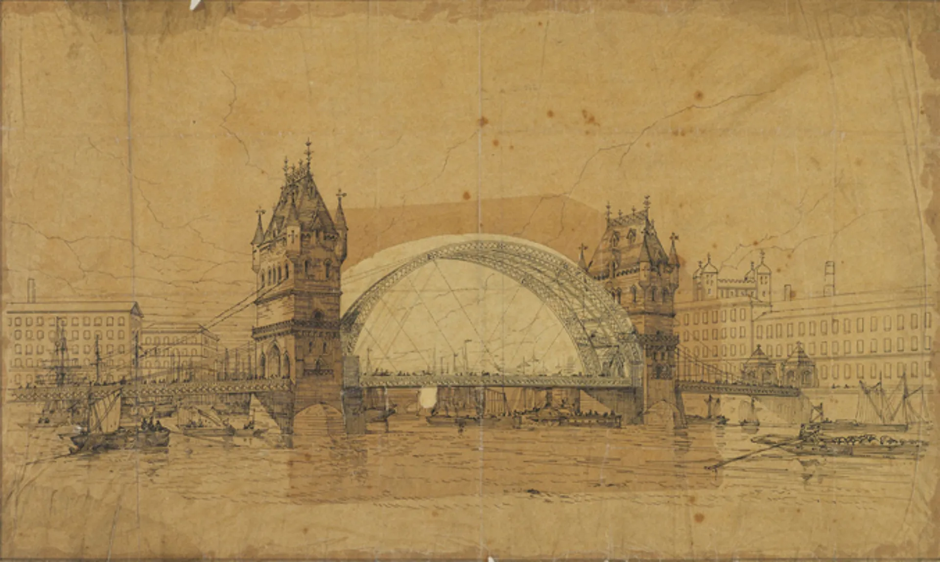 During the competition to build Tower Bridge held between 1876 and 1879, fifty different designs were proposed, including many types of moving bridges. These included swing bridges, roller bridges, lifting bridges, transporter bridges, duplex bridges and many others including a proposal for a bascule bridge from the City of London Architect, Sir Horace Jones.