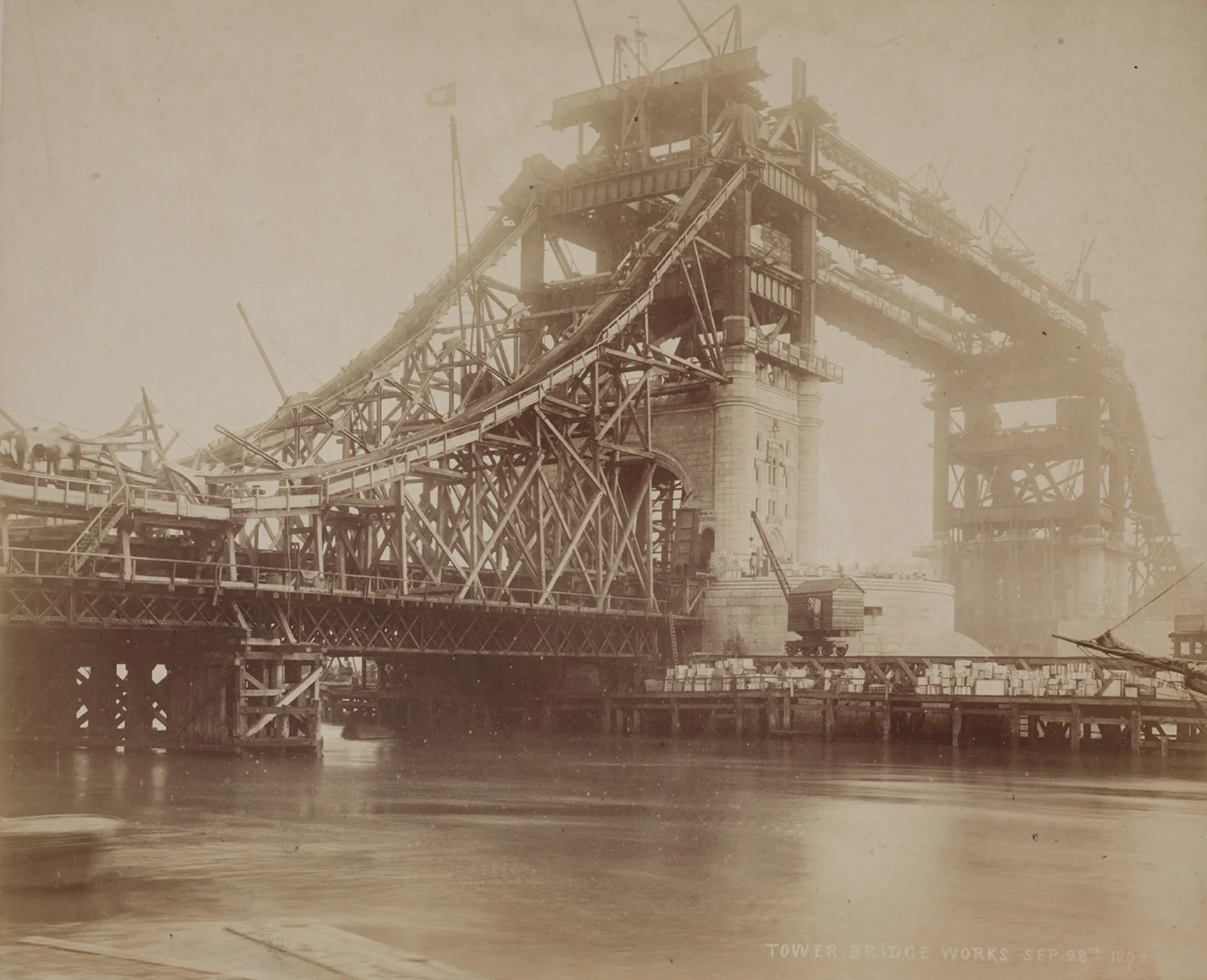 A modified version of this design, produced in partnership with Sir John Wolfe Barry, was finally accepted by both the City of London and Parliament in 1884.